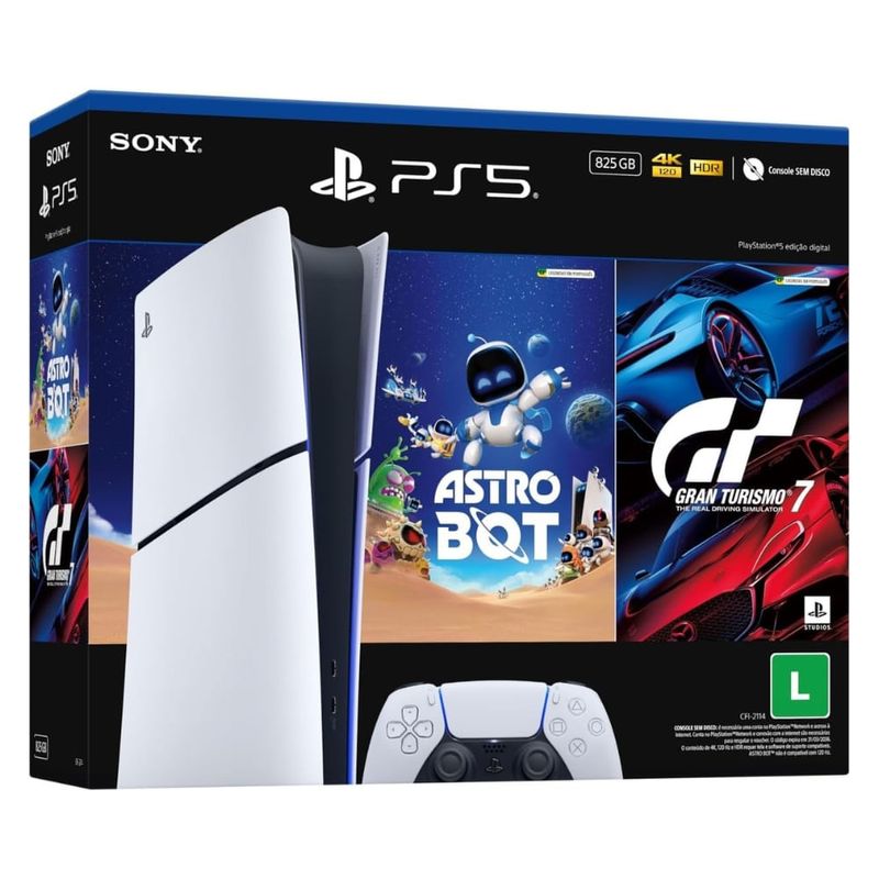 Console PS5 Slim Digital 825GB SSD + Astro Bot + Gran Turismo 7 com Controle DualSense Branco - Sony