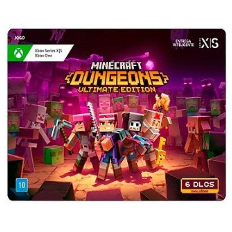 Viva a história completa de Minecraft Dungeons do começo ao fim, ou melhor, End! Aproveite a Edição Ultimate, que inclui o jogo base e todos os seis DLCs: Despertar da Selva, Inverno Arrepiante, Picos Uivantes, Chamas do Nether, As Profundezas Ocultas e Vazio Ecoante, tudo a um preço mais baixo do que comprar o jogo e os DLCs separadamente. Combata dezenas de criaturas, explore diferentes dimensões e encontre incontáveis tesouros enquanto acompanha a história de Arce-Illager e o Orbe da Dominância. Esta é a sua chance de mergulhar na experiência completa de Minecraft Dungeons, então garanta a sua edição agora mesmo!