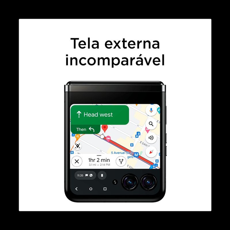 Veja e faça mais na maior tela externa dos telefones flip do mercado.